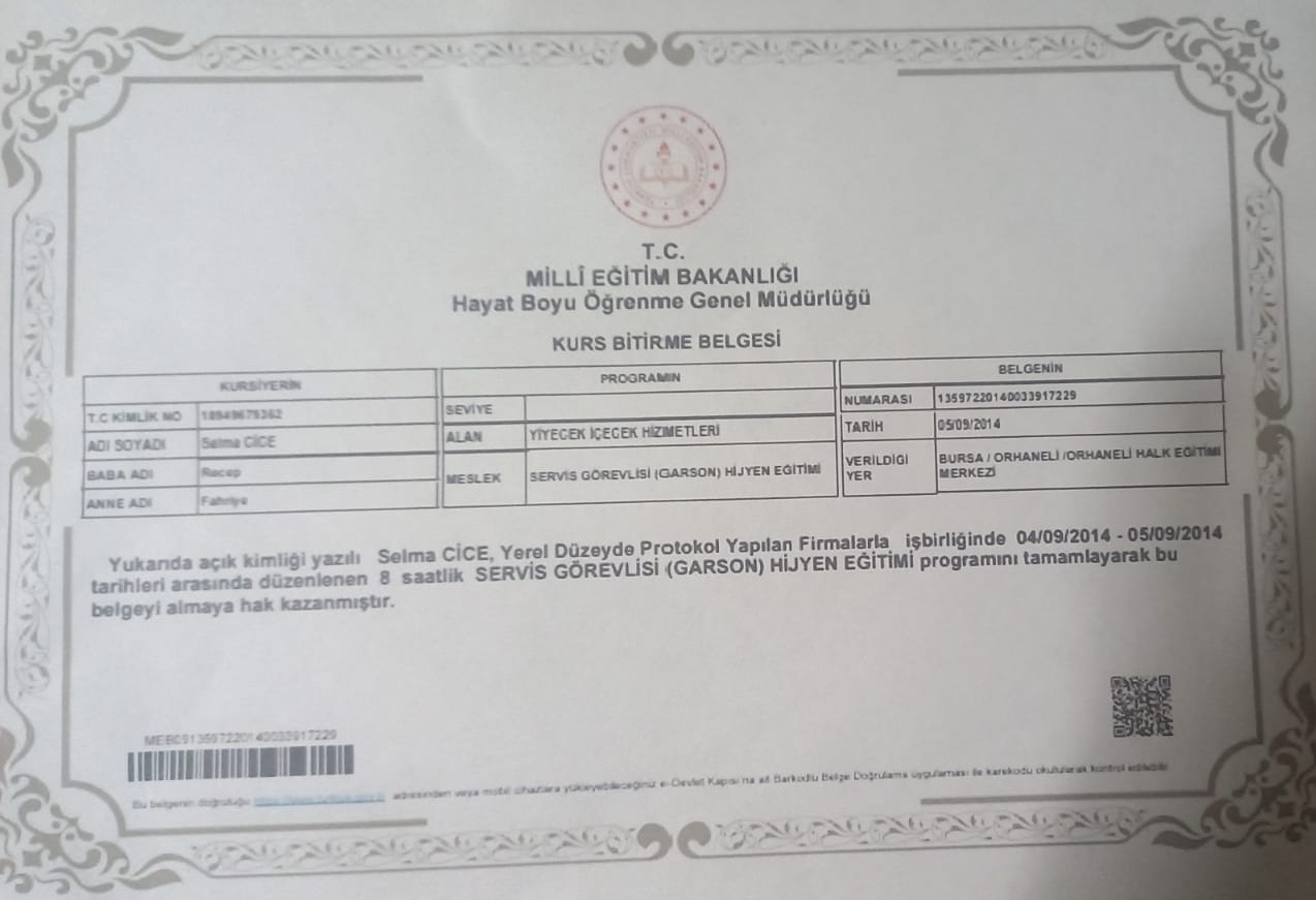 Sağlık Bakanlığı onaylı hijyen sertifikamız